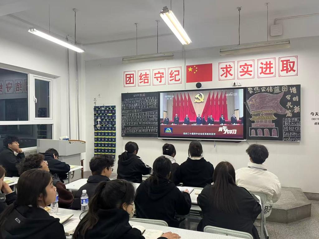 10月20日至23日,中国共产党第二十届中央委员会第四次全体会议在北京召开。全会擘画了中国式现代化宏伟蓝图,审议通过了《中共中央关于制定国民经济和社会发展第十五个五年规划的建议》,为新时代新征程指明了前进方向。10月30日,校团委精心组织开展主题团课活动,带领广大团员和青年深入学习党的二十届四中全会精神。