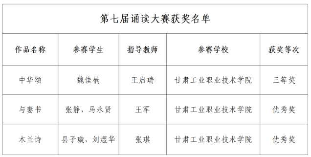 第七届中华经典诵写讲大赛甘肃省省级初赛由甘肃省语言文字工作委员会、甘肃省教育厅主办,旨在传承和发扬优秀文化,展现当代青年风采。大赛分为经典诵读、诗词讲解、汉字书写和师生篆刻四个赛项,涵盖了不同领域的语言艺术。活动开展后,我校组织师生广泛参与,经校内评审推荐,12项作品入围省赛,其中6项作品获奖。