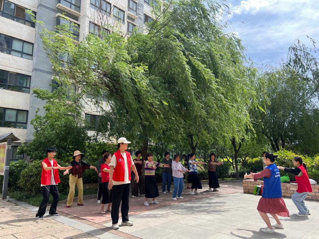 活动最后,志愿者们带领社区老人学习八段锦养生操,帮助老人掌握科学锻炼方法。参与者纷纷表示,此类活动既实用又暖心,期待更多贴近生活的志愿服务。“校社联动”积极引导青年学子在社会实践中彰显责任担当,为构建老年友好型社区注入青春力量。