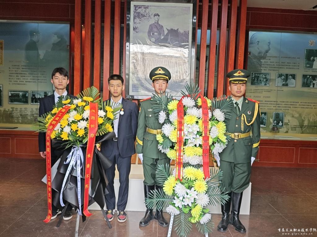 在庄严肃穆的邓宝珊将军纪念馆前,师生列队肃立,举行祭扫仪式。学生代表敬献花篮、教师代表整理缎带,全体人员默哀致敬,深切缅怀将军的爱国精神与历史功绩。这一庄严的仪式,提醒我们铭记历史,传承精神,勇担时代使命。