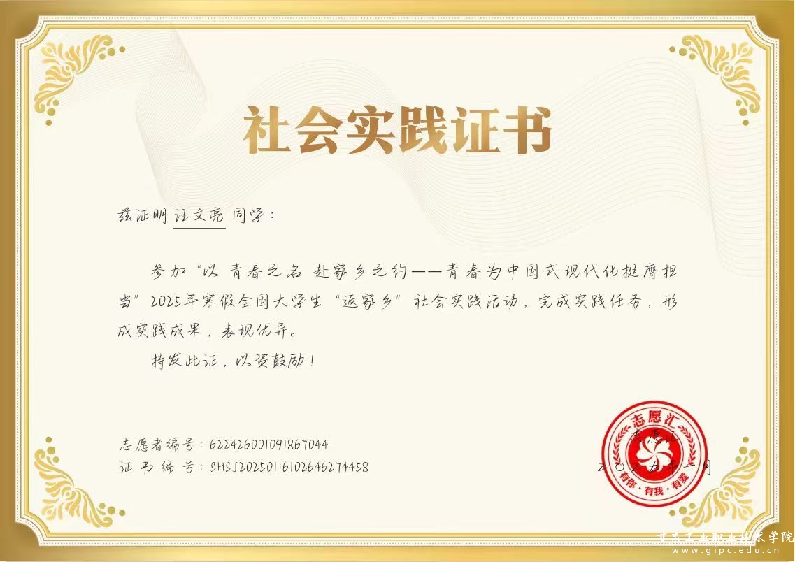 整个寒假,汪文亮以“以青春之名 赴家乡之约”,淋漓尽致地展现了甘工院学子的青春风采。他用实际行动诠释着当代大学生的责任与担当,让青春在为家乡服务的舞台上绽放出最为耀眼的光芒,也为这个寒冬的家乡增添了一抹绚丽且温暖的色彩。