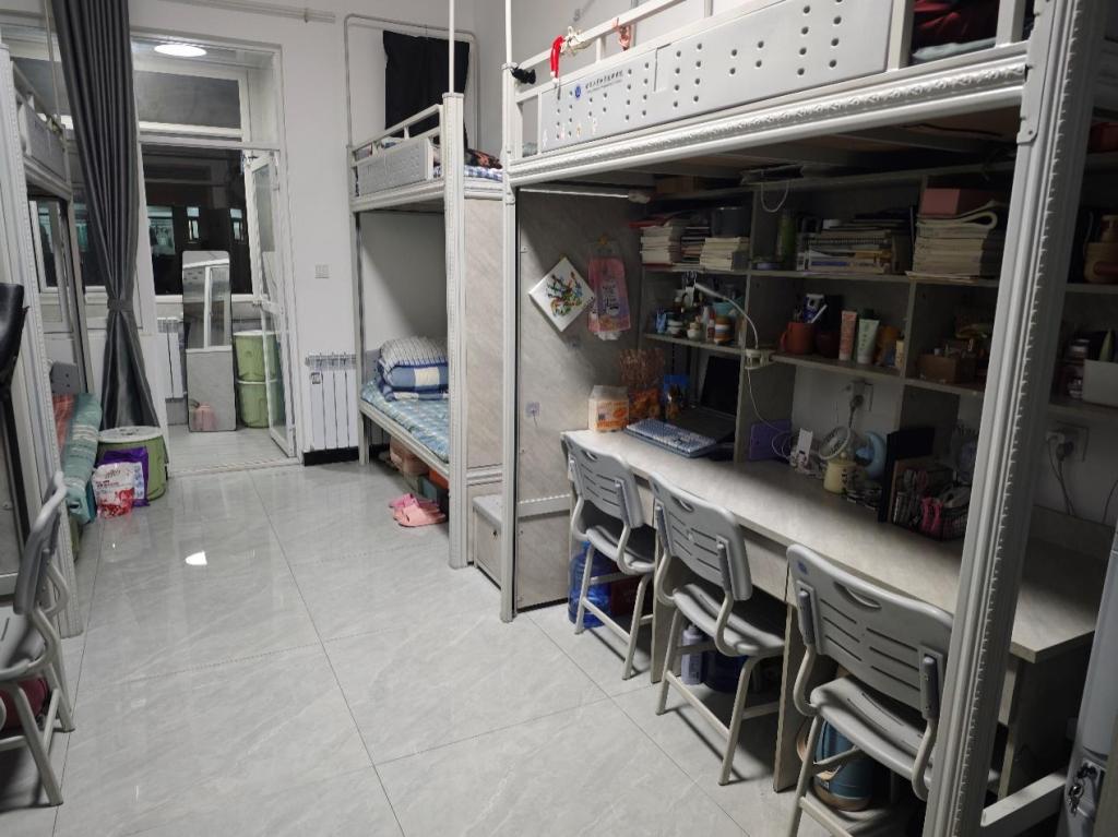 踏入建筑学院9公寓605宿舍,温馨之感扑面而来。光洁的地板映着窗外蓝天,似在低语整洁的密语。床铺如云般柔软莲松,被褥叠放规整,抱枕随意而有序地靠着,散发慵懒气息。