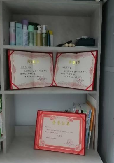 宿舍环境是她们递出的第一张“名片”。推开门,清新之感扑面而来,地面光亮可鉴,没有一丝杂物。床铺统一而整洁,军被叠得方方正正,床单平展无褶,仿佛军训时的高标准从未降低。阳台更是一道亮丽风景线,绿植错落有致,绿萝的藤蔓垂落,多肉植物憨态可掬,在阳光照耀下生机勃勃,这些都是舍友们闲暇时精心呵护的成果,为宿舍增添了无限生机。再看那自制的收纳架,巧妙利用废弃木材,按照每个人的物品需求分层分格,既环保又实用,将有限的空间利用到极致,处处体现着生活的巧思。