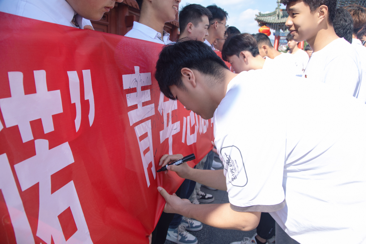 6月15日,团市委、市学联在伏羲广场举行“创建全国文明城市,我参与、我承诺”青年志愿者服务公祭伏羲大典签名活动。