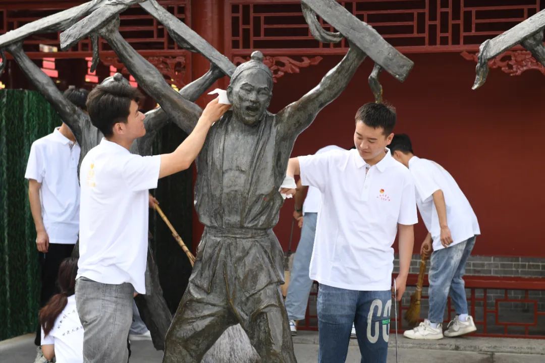 甘肃工业职业技术学院100名青年志愿者进行了现场签名承诺。之后,青年志愿者发扬不怕累、不怕脏的优良作风,始终保持了劳动的激情,将公祭伏羲广场灯杆、花坛、市政设施、卫生死角等进行认真彻底清扫,对广场内杂草进行彻底的清除,公祭伏羲广场环境面貌焕然一新。