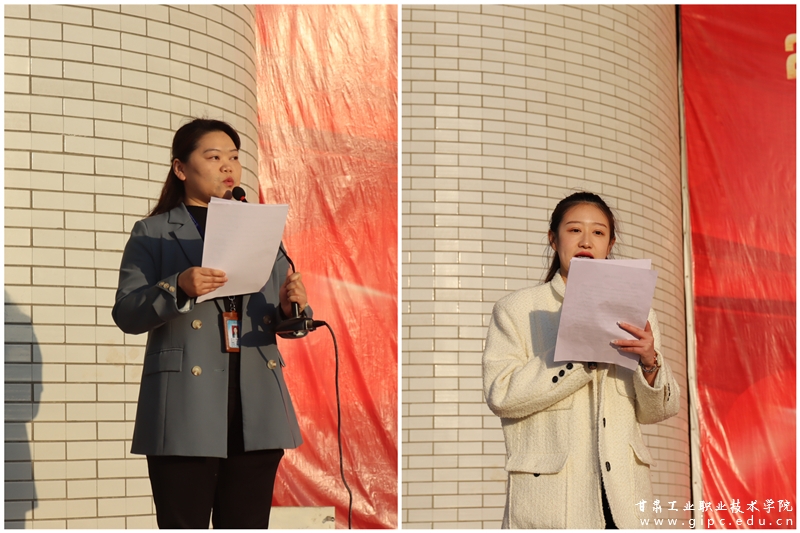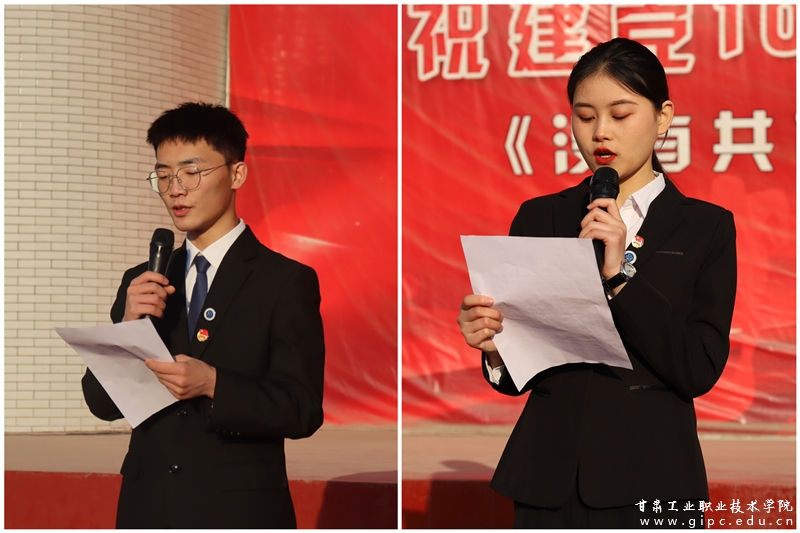 入团介绍人代表吴丹宣读《团章》中有关团员义务和权利的条款,测量2033班颜亚伟同学和空乘2032班牛静蓉同学作为新、老团员代表分别发言。