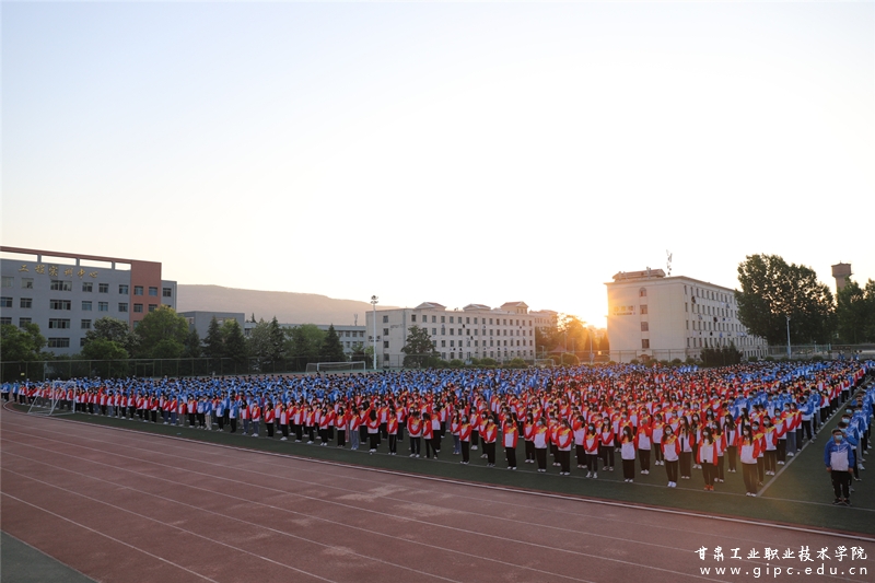 伴随着初升的太阳,庄严的国歌声响彻校园,五星红旗冉冉升起。