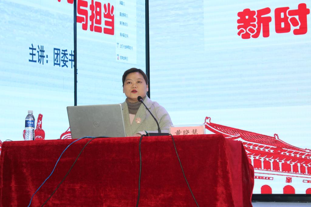 为深入学习贯彻党的十九届六中全会精神,引领新时代青年的使命与担当,党的十九届六中全会通过的“历史决议”指出:“党和人民事业发展需要一代代中国共产党接续奋斗,必须抓好后继有人这个根本大计。”3月8日,校团委书记黄晓慧在大学生活动中心开展了“以全会精神为引领新时代青年的使命与担当”--第十七期青马培训班第四堂讲座,针对“青马工程”培训班全体学员及校院两级学生会干部进行专题培训。