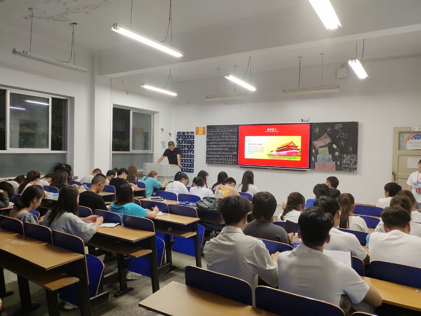 百年征程波澜壮阔,百年大党风华正茂。7月1日上午8时,庆祝中国共产党成立100周年大会在北京天安门广场隆重举行。中共中央总书记、国家主席、中央军委主席习近平发表重要讲话。7月1日晚,我校团委组织各二级学院通过主题团课形式集中再一次回看了中国共产党成立100周年大会,引导广大学生深刻认识中国共产党百年辉煌历史,深刻学习领悟习近平总书记发表的重要讲话并引起强烈反响。