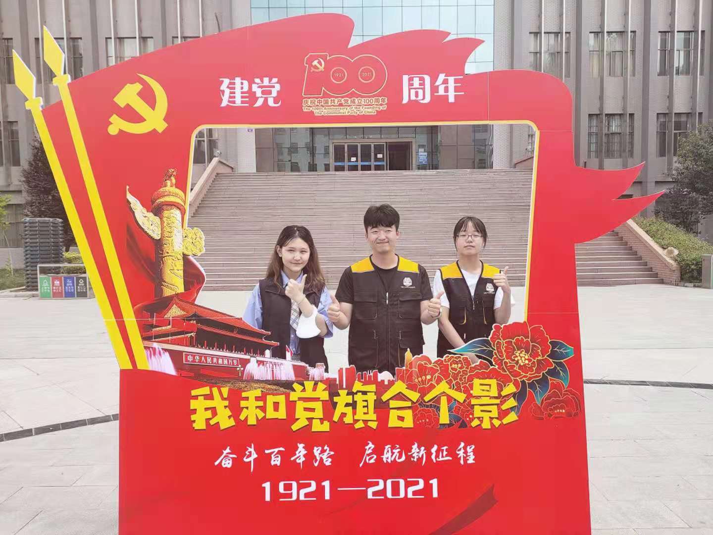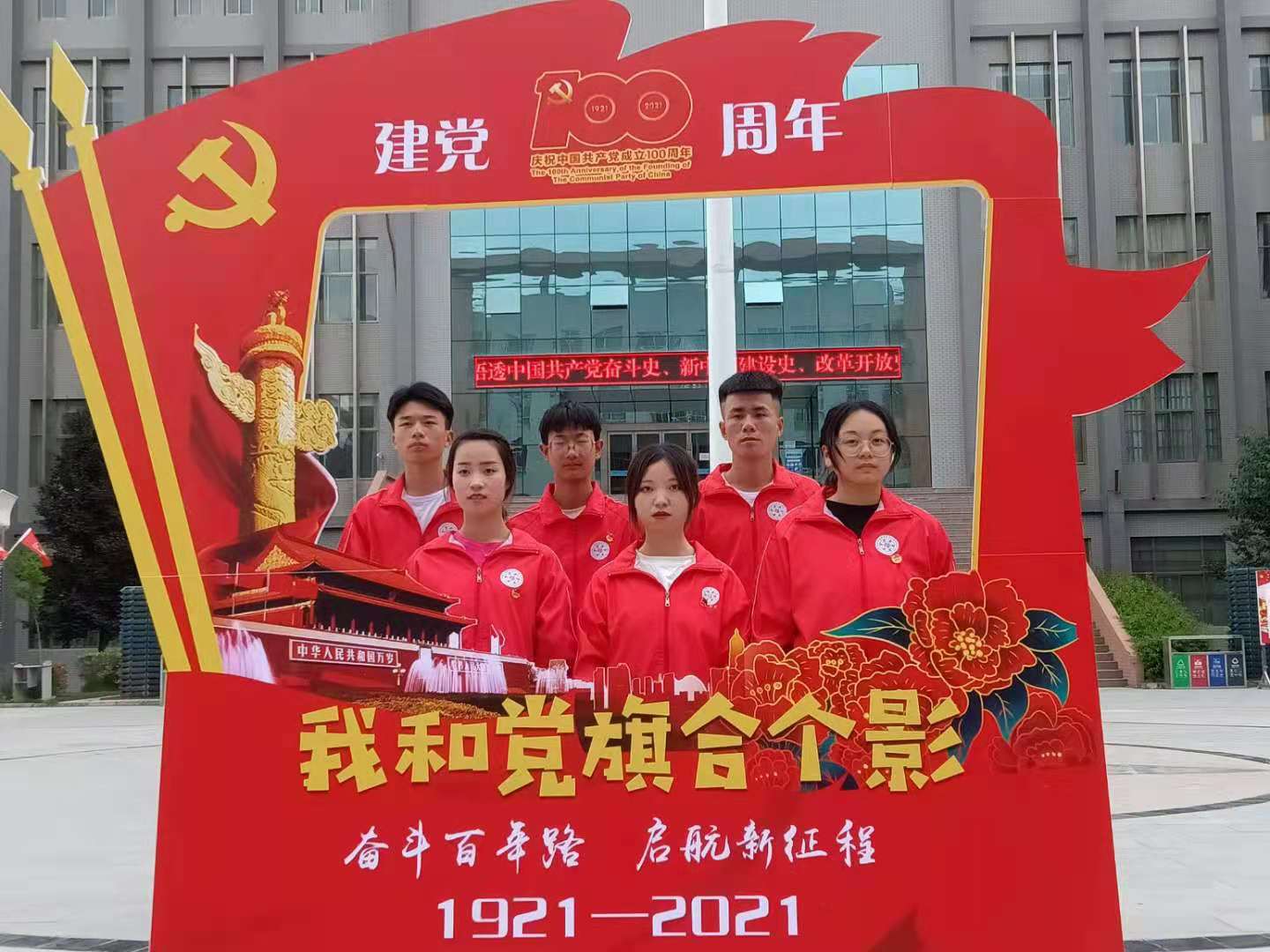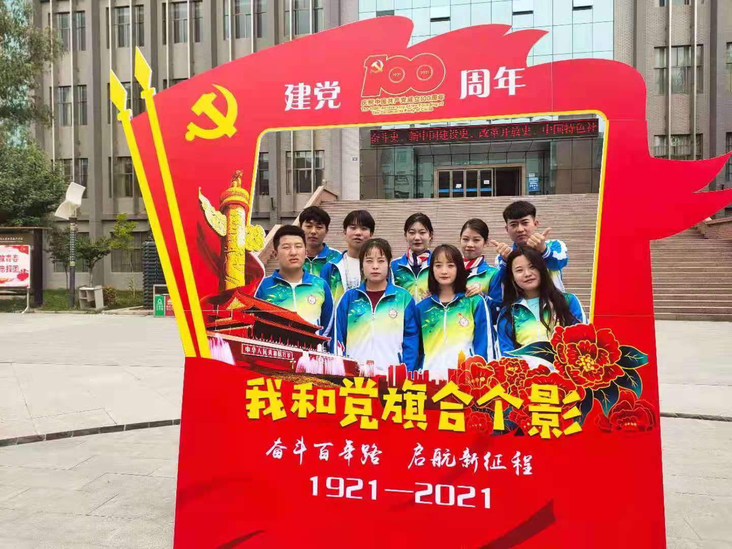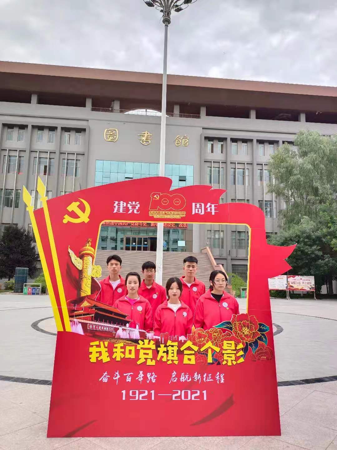 百年光辉历程,百年丰功伟绩。为庆祝中国共产党成立100周年,引导青年学子坚定理想信念,近期,宣传统战部、团委举办了“青春逐梦心向党 我与党旗合个影”活动,组织各二级学院学生代表及各学生组织前往图书馆前拍照打卡。