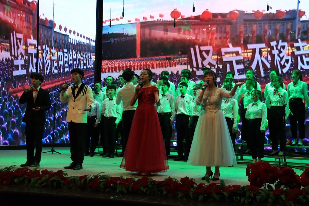 活动中,与会人员通过短视频和主持人的介绍回看了党的百年征程、回顾了102年前拉开中国新民主主义革命序幕的伟大“五四”运动,让大家再一次受到精神上的洗礼。红歌唱响五四精神,党旗飞扬百年辉煌。伴随着国旗护卫队一曲嘹亮的《强军战歌》拉开了活动的序幕,大学生艺术团的表演曲目《阿里山的姑娘》、《我和我的祖国》、《红旗飘飘》、《军港之夜》唱出了对祖国浓浓的爱意,他们的舞蹈舞出了青春的梦想;各二级学院、学生组织的表演方阵用朴素的辞藻和真诚的声音表达了对祖国、对党和人民的祝福及热爱。电信学院《不忘初心》《走向复兴》、化工学院《国家》、地质学院《忠诚于党》、建筑学院《我们走在大路上》、旅游学院《精忠报国》、艺术学院《灯火里的中国》、测绘学院《我的中国心》、经管学院《强军战歌》、国旗护卫队《祖国不会忘记》、学生社团联合会《没有共产党就没有新中国》,一首首大家熟知的红色歌曲歌声嘹亮、感情充沛,有的气势豪迈,有的旋律悠扬,整场晚会氛围高涨,精彩纷呈。