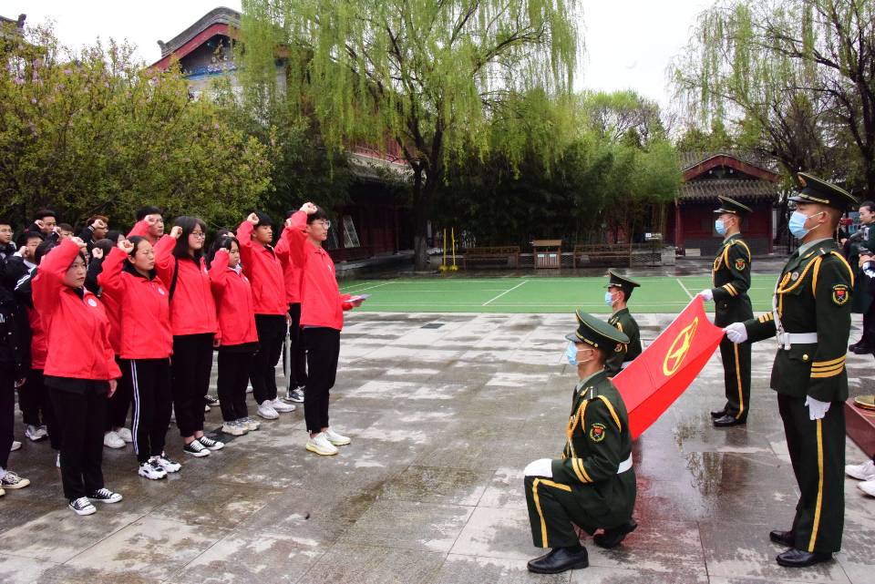 馆外,同学们面向鲜红的团旗,重温一遍入团誓词,心中的对党对国的热爱激荡久久。学生会主席王立垚表示:生活在这个多姿多彩的、和平幸福的年代里,一定会倍加珍惜无数先烈用生命给我们换来的幸福生活,勤奋学习,努力成才,牢记烈士的遗愿,踏着烈士的足迹,用自己的生命和才智去实现先烈们未尽的共产主义事业,去创造祖国更加和谐美好的明天。