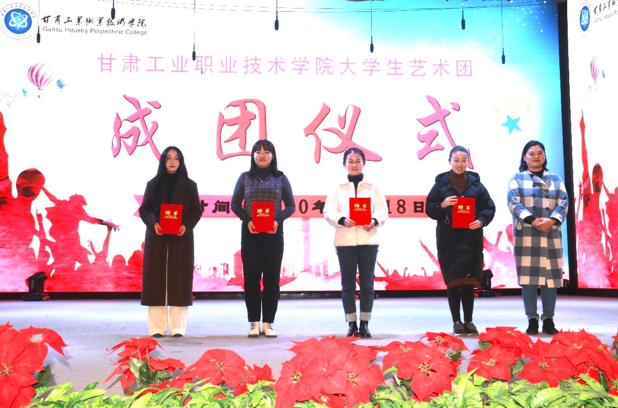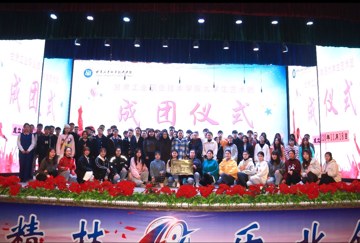甘肃工业职业技术学院大学生艺术团是由校团委主要指导建立的一个以“丰富大学生活,弘扬校园文化”为宗旨,以发展学生艺术特长、提升学生审美能力为目的的学生社团组织;是我校开展素质教育的一个重要载体,是校园文化建设的一个有机组成部分;能够通过丰富多彩的文化艺术活动,积极搭建文艺爱好者学习交流平台,提高我校学生的艺术文化修养;丰富校园文化生活的同时营造良好的校园艺术氛围,为我院学生文艺活动积蓄力量。