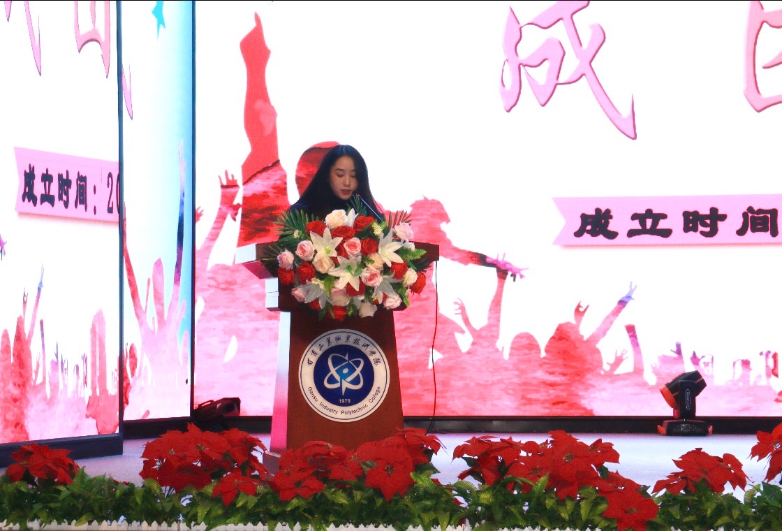紧接着,艺术团指导教师吴文静向参会师生介绍了艺术团的前期筹备、机构设置、社员组成以及今后工作计划,并宣读了《甘肃工业职业技术学院大学生艺术团章程》。艺术团成员代表赵芸芸同学进行发言,表示将会秉承艺术团的宗旨,在校团委的正确指导下,充分发挥艺术团的文化阵地作用,努力练就新时代青年学生的艺术本领,做好第一届艺术团人,迈好艺术团成长第一步!