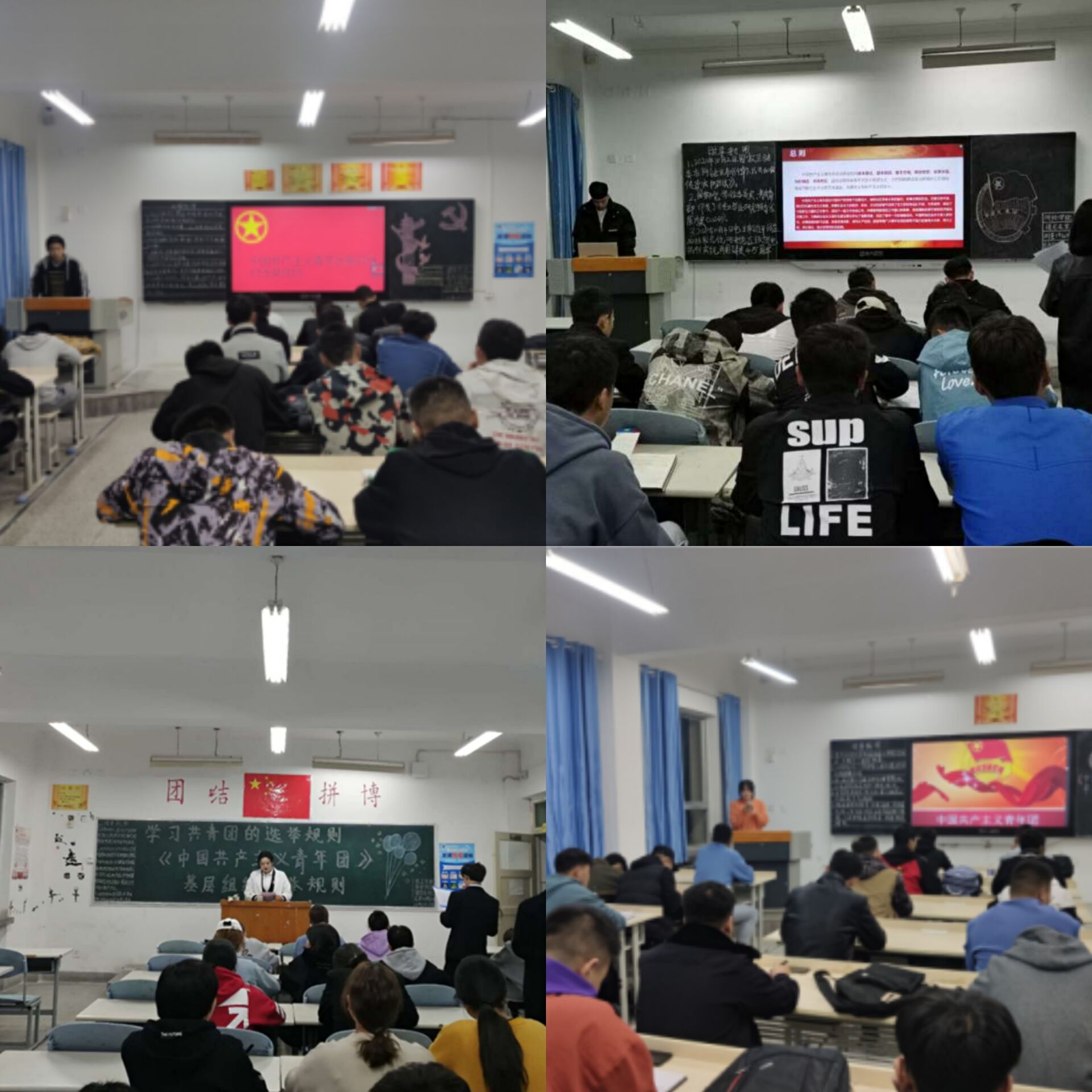 在我校第四次团学代表大会召开前,各团支部按照中央有关要求, 结合各地团内基层选举的实践, 对《中国共产主义青年团基层组织选举规则》进行了修订。所以我校积极号召学习,团总支于10月25日组织各二级学院团支部学习“中国共产主义青年团基层组织选举规则”的主题团课。并号召全校同学积极响应。