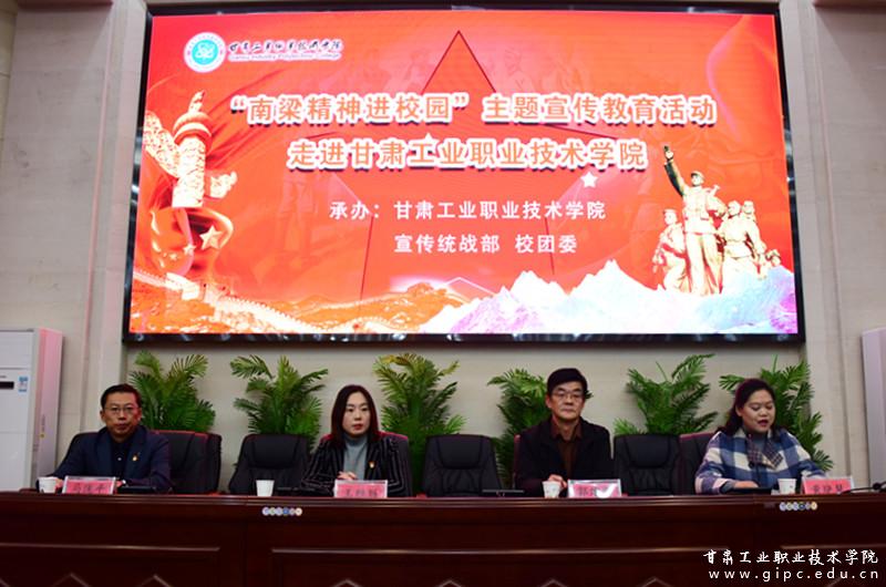 10月22日下午,甘肃省“南梁精神进校园”主题宣传教育活动在我校举行。此次活动包括“讲好南梁故事•永远跟党走”主题展览以及专题报告会。党委副书记郭建忠出席报告会,马克思主义学院思政课教师、学生辅导员和团学干部代表共300余人参加了报告会。报告会由校团委书记黄晓慧主持。