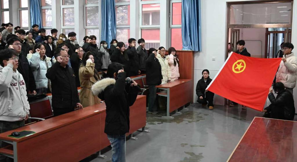 团委负责人向新团员表示祝贺,并提出殷切希望。他指出,同学们要始终坚定理想信念,强化理论学习,深耕专业技能;要勇当先锋表率,以实干精神践行入团誓言;要继承先辈志向,将“小我”融入“大我”,努力成长为有理想、敢担当、能吃苦、肯奋斗的新时代好青年。